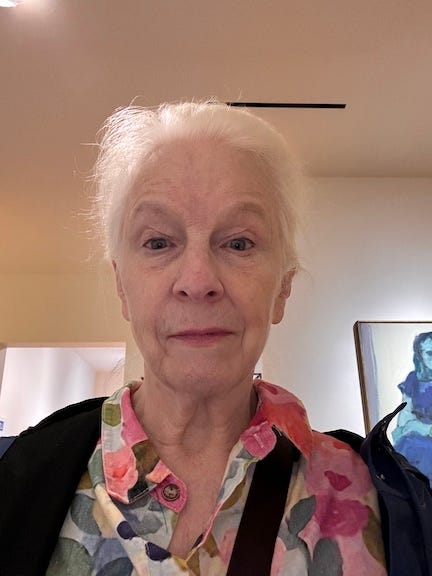 Believe it or not, I have makeup on in this untouched photo on the left. I got gussied up to go downtown to the Phillips Gallery in DC. I thought I looked pretty good until I saw this selfie where I appear to be just another haggard old woman. Until this point, I had walked the gallery feeling like this pulled-together, ethereal, beautiful woman on the right.