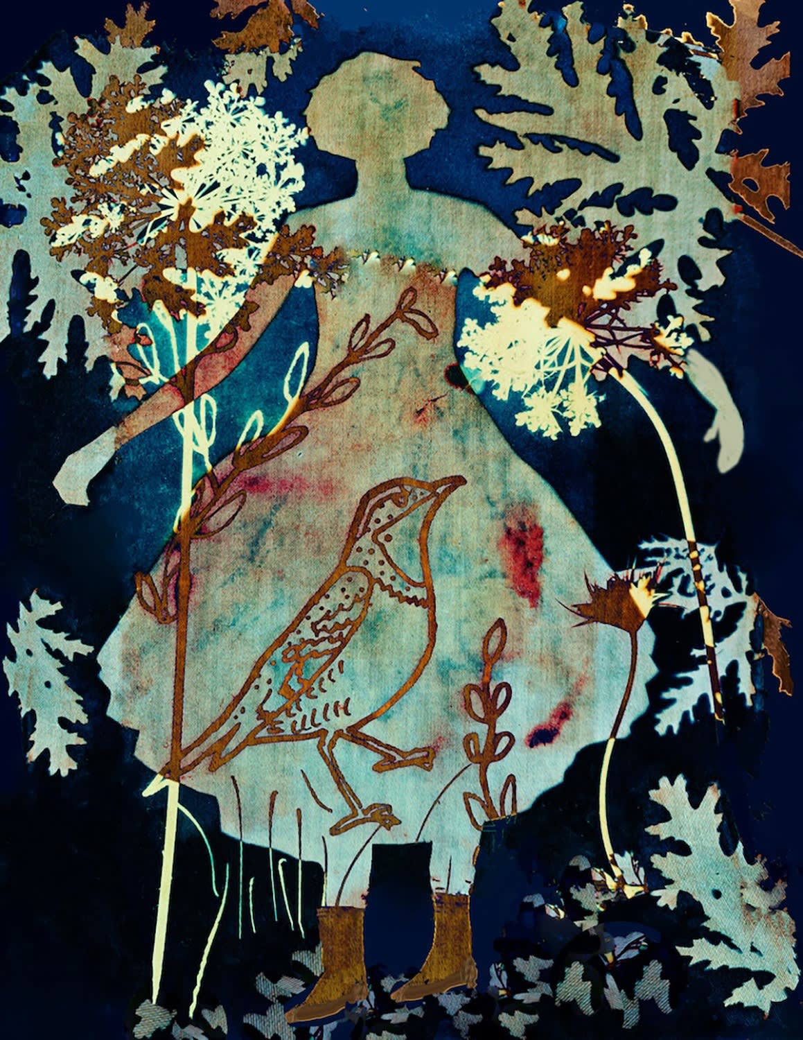 Lady Alchemy showed up late in my art life. Looking to make cyanotype prints with something other than leaves, I modified an image I found on a torn magazine page from my collection. (I’m a magazine junkie, an addiction I picked up from my mother. More on that another day.) Lady Alchemy became my alter-ego, my art persona, my muse. And boy, has she inspired me. Just looking at her makes me want to make something. Maybe that’s why I have so many unfinished projects throughout the house.