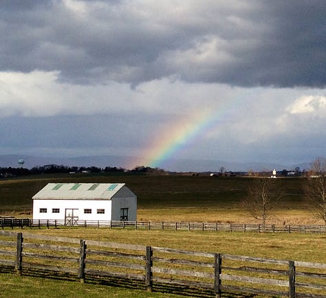 Back on a farm… This time, I felt like the lady of the manor. It was a dream come true as far as homes go, and again, there were horses to enjoy right outside our door. Plus, I had a studio-my first! No more working on my bed. That first evening in the house, when I was home alone, waiting for my husband to return with more of our stuff, I caught a glimpse of a sunset behind the tree outside the kitchen window. I ran outside to see it and actually fell to my knees in awe of its magnificence. I don’t remember sunsets on the first farm, and back in Bethesda, there were too many houses and trees to obscure the wide open glory I was experiencing. I loved every minute in that house, its history, its horses, but with two exceptions - very cold winters and very hot and humid summers (No A/C)